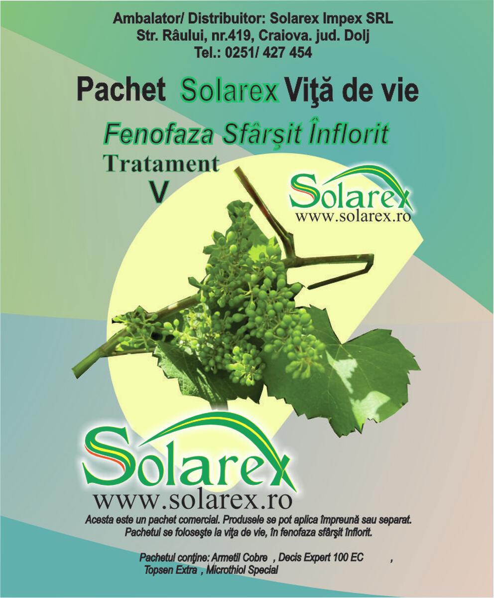 100L water - The package is for use on vines when they are in the late bloom phenophase. The products in the package are dosed at grams that dissolve in approximately 100 liters of water. The package contains: Armetil Cobre 250 grams, Decis expert 100 EC 2 vials of 7.5 ml, Top Sen Extra 50 grams and Microthiol Special 300 grams.