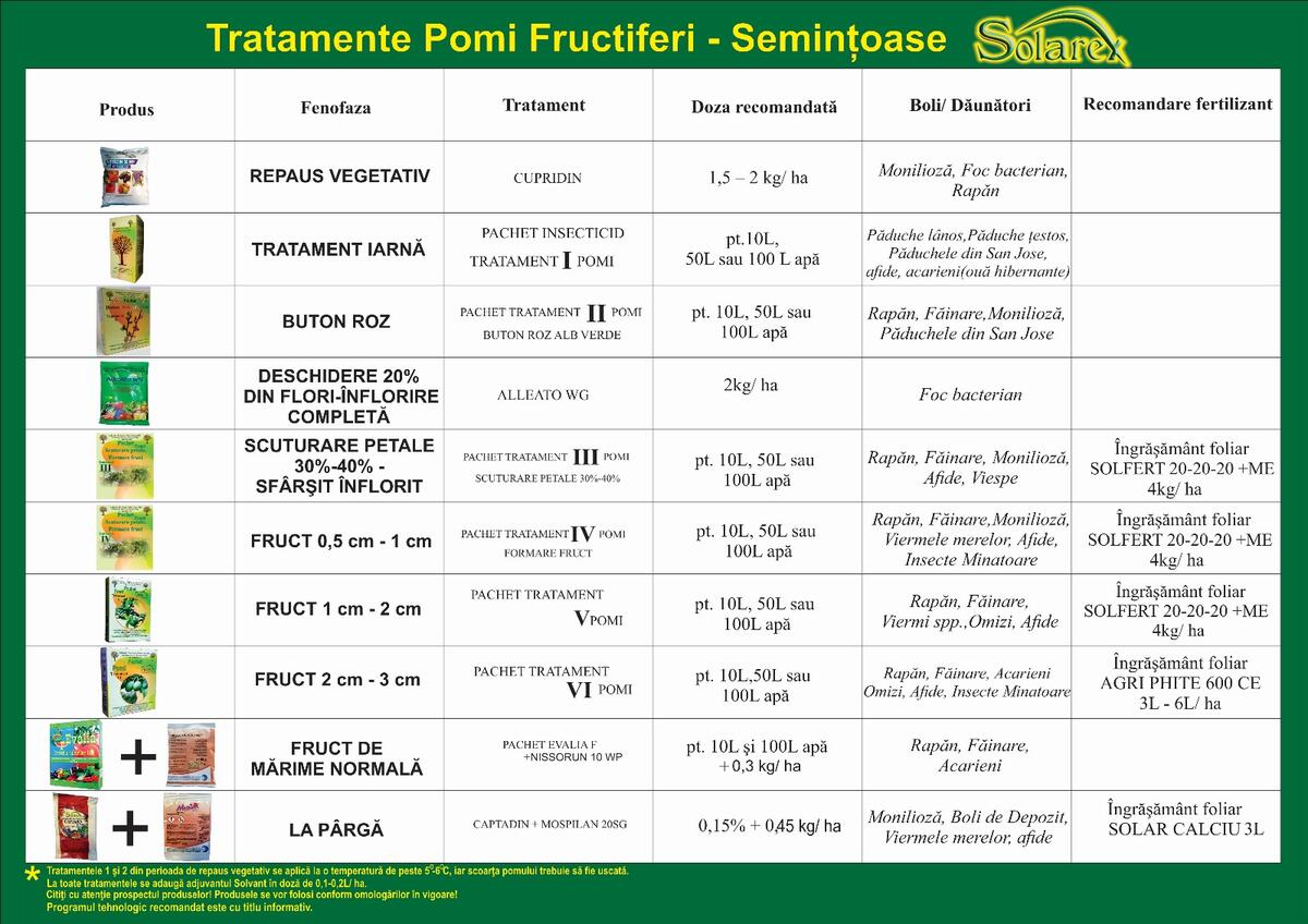 Stropirile sunt mai usoare cu utilizarea PACHETELOR DE TRATAMENTE POMI care contin fungicide si insecticide cu spectru larg asupra unui numar mare de boli si daunatori.