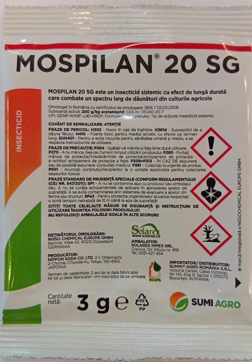 - MOSPILAN – 0,250 kg/ha( 3g/10l apa).