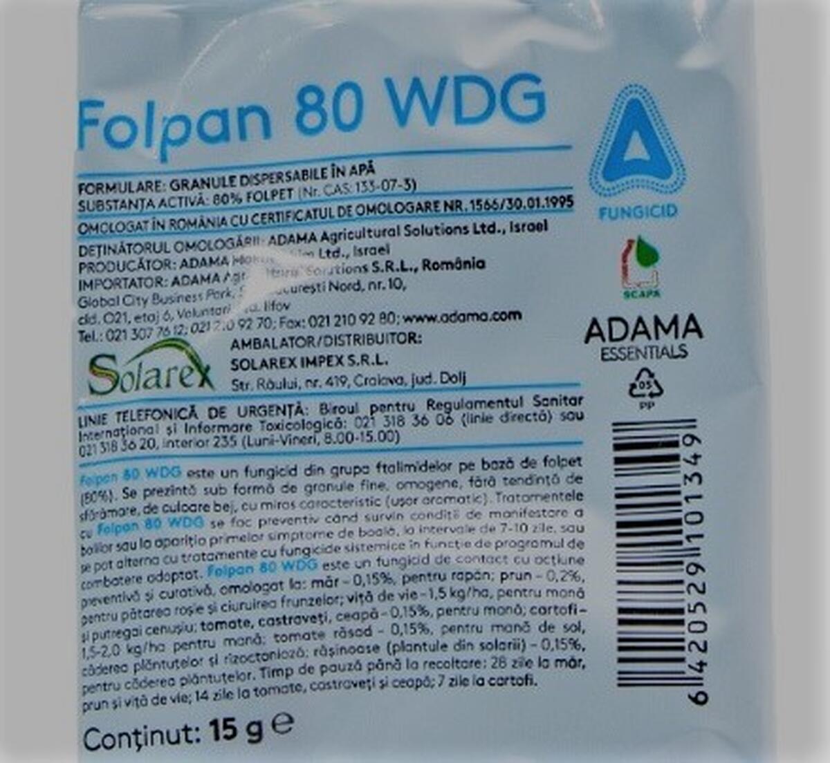 - FOLPAN 80 WDG – 0,15 %( 15g/10l apa).