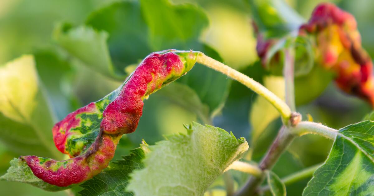 Frunzele atacate inclusiv cele din zona de varf ale lastarilor tineri se deformeaza, rasucesc – de la varf spre petiol, se gofreaza-inrosesc si formeaza gale ce au la interior paduchi, pot sa cada prematur.