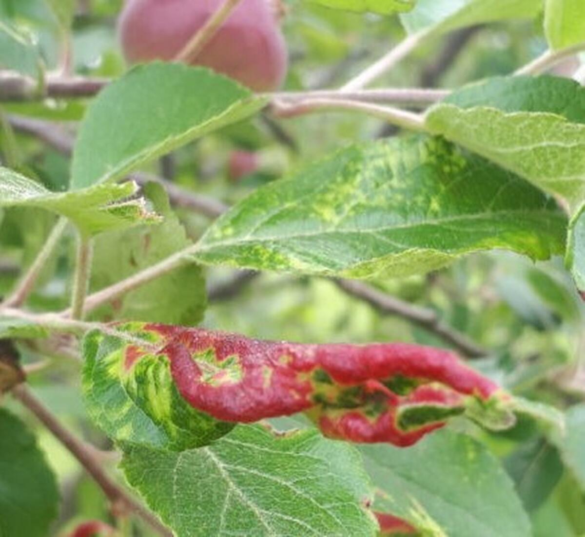 MAR – RASUCIREA SI INROSIREA FRUNZELOR ! PADUCHELE ROZ GALICOL AL MARULUI  (Dysaphis devecta). COMBATERE EFICIENTA !