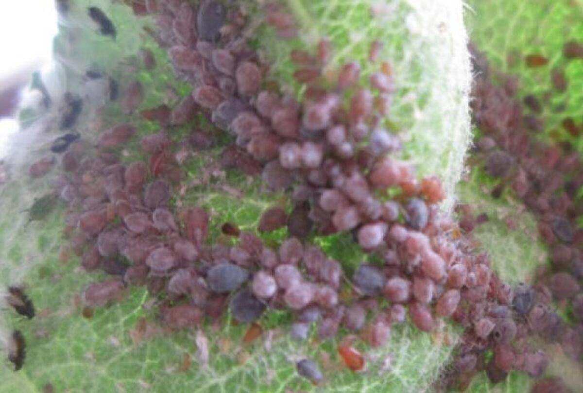 Exemplarele de paduche galicol roz (inteapa si sug sucul celular din organele crude ale plantei, urechiusele iesite din mugurele abia desfacut (stadiu de urechiuse), frunze, lastarii tineri, etc.