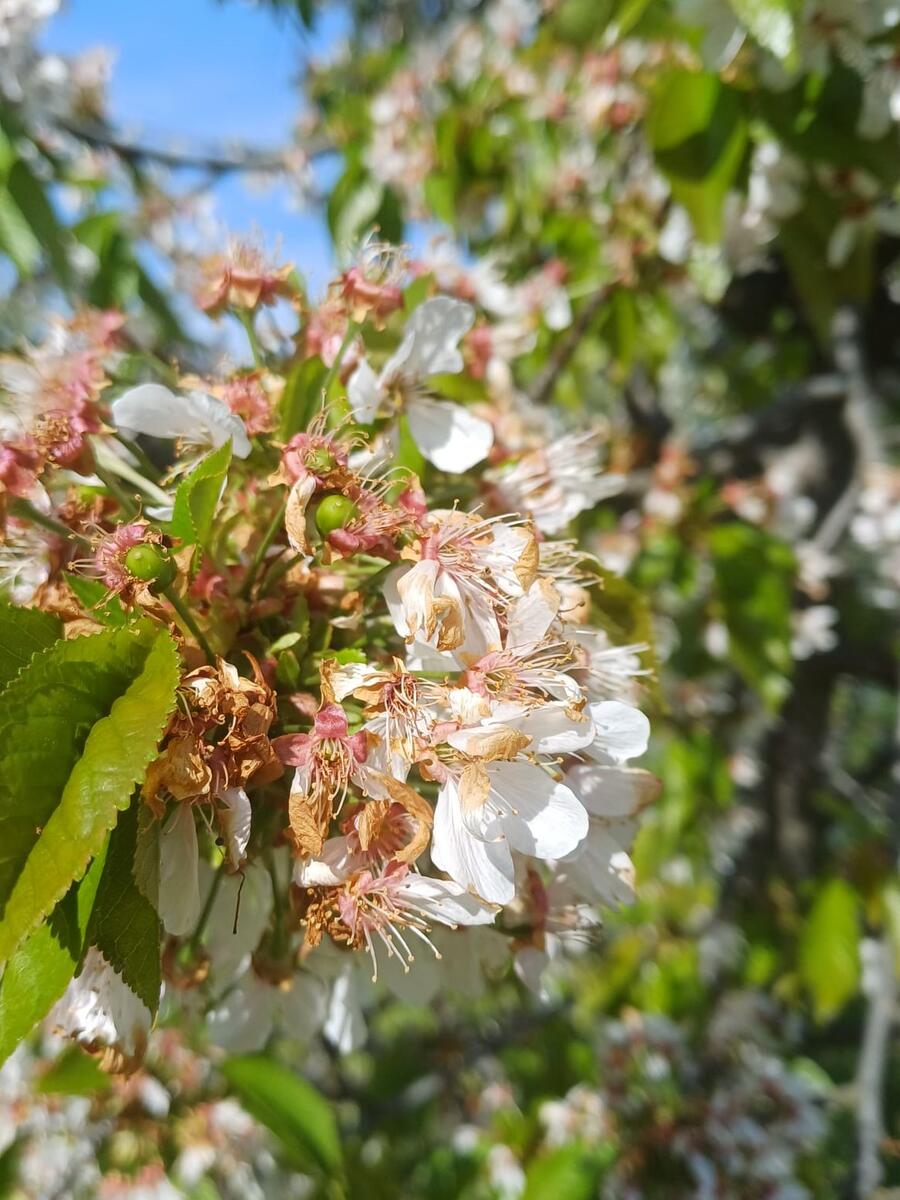 - MONILIOZA– atacul se manifesta pe ramuri , frunze , flori si fructe iar in primaverile reci si ploioase ramurile cu frunze si flori se vestejesc in numar mare. Pe fructele ajunse la maturitate atacul ciupercii determina o putrezire a pulpei si productia este compromisa.