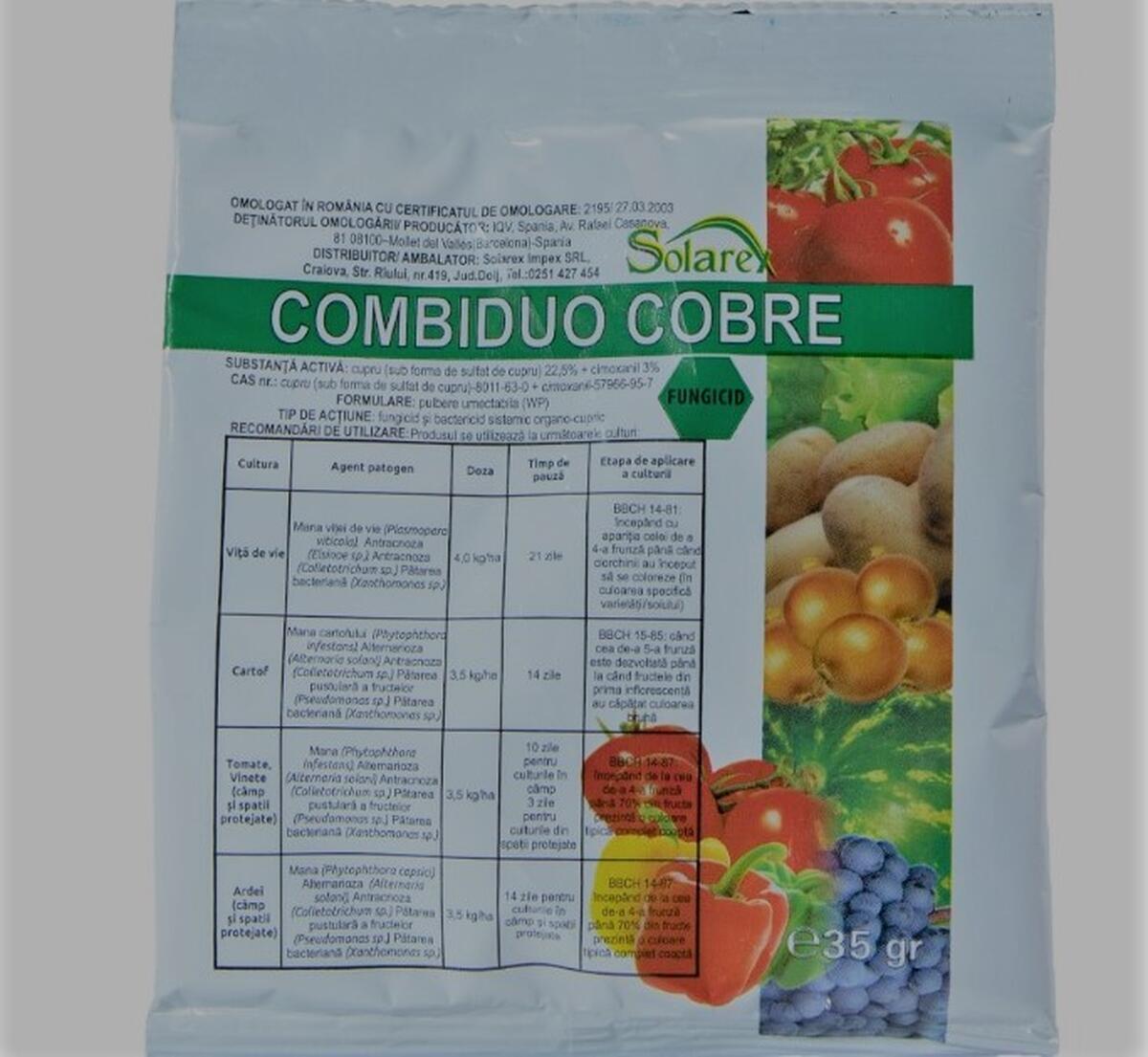 - COMBI DUO COBRE – 3,5 kg/ha ( 35g/10l apa).