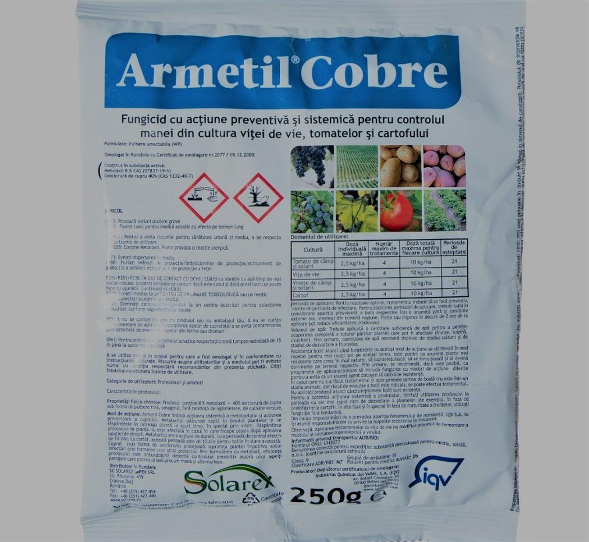 - ARMETIL COBRE – 2,5 kg/ha ( 25g/10l apa).