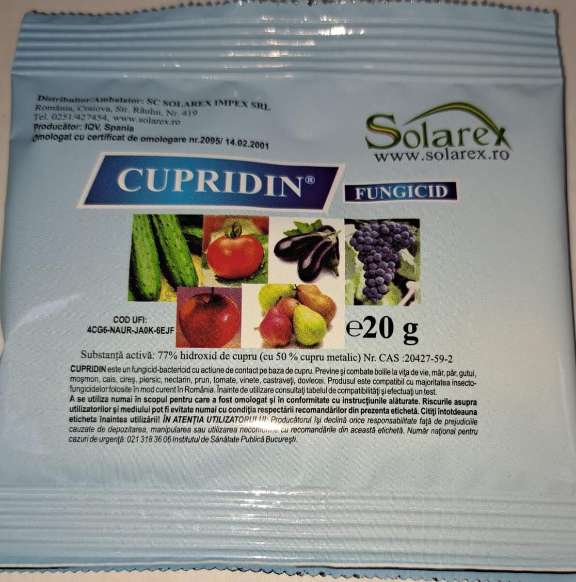 - CUPRIDIN 50 WP – 1,5 – 2,0 kg/ha ( 20 g/10 l apa).